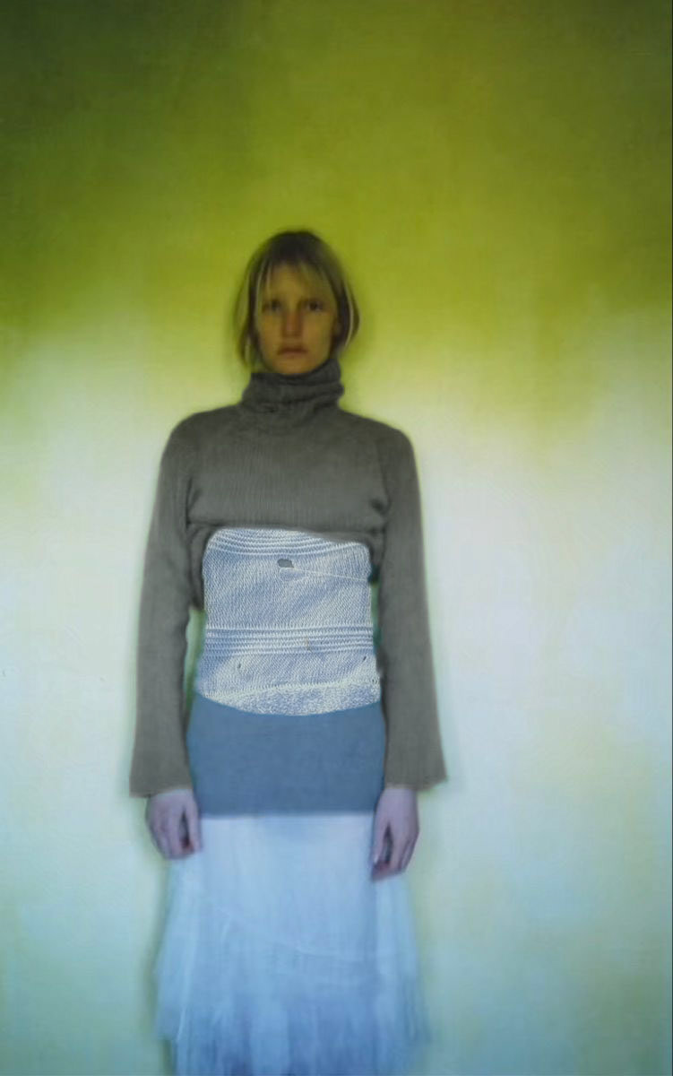 Knits collection inspired by the sea, fishing industries, and fish as nourishment. Wool and cotton, ribbed knits on Double Bed.
