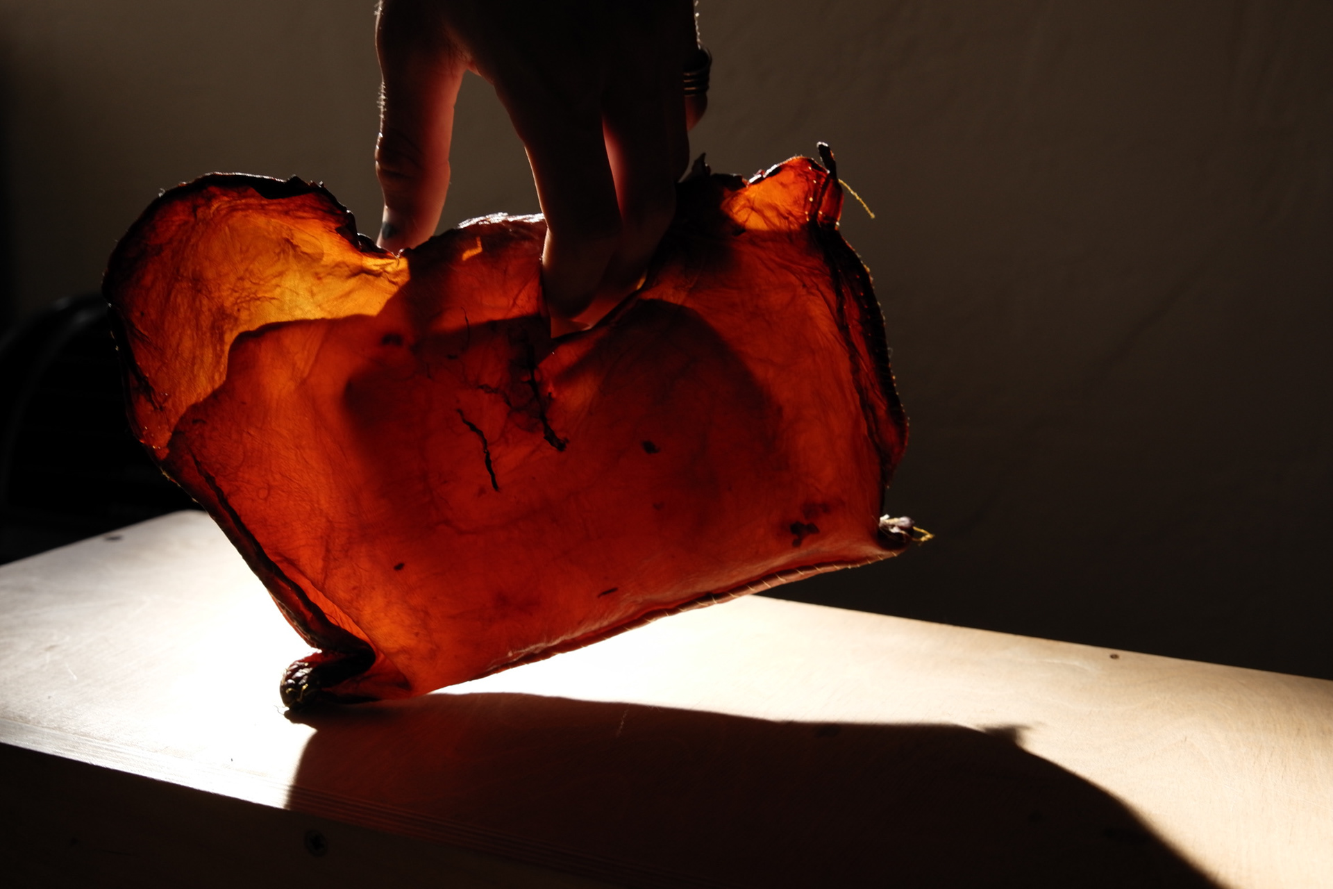Kombucha I grew from SCOBI mother, tanned with coconut oil. Zero-waste pattern, no cutting.